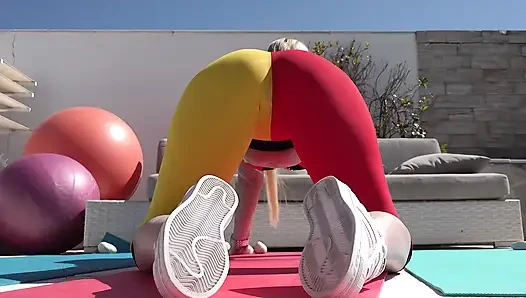 Young pierced curvy MILF enjoys outdoor yoga sex